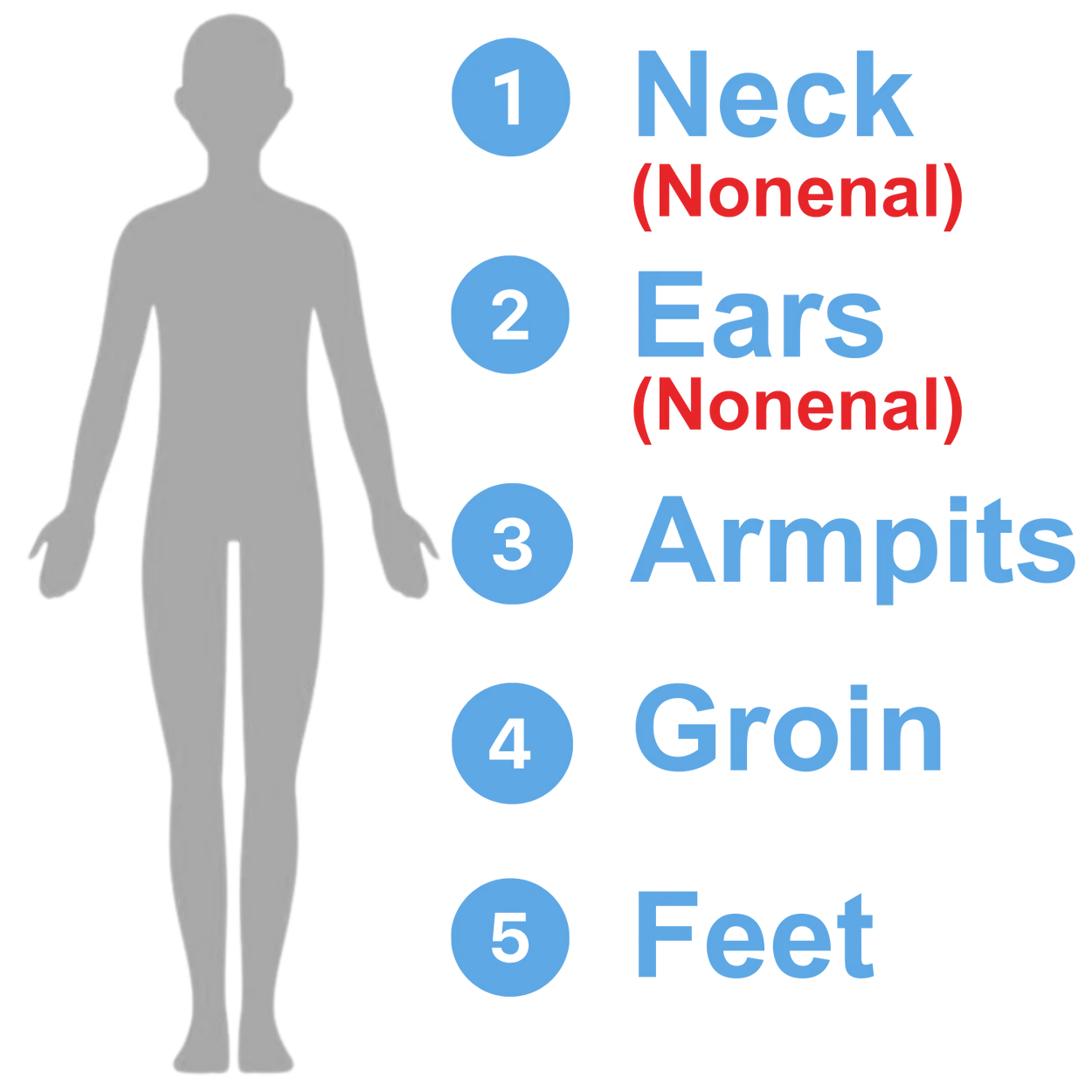 Pro Tip: For best results, cleanse areas 1 (Back of the Neck) and 2 (Behind the Ears) where Nonenal most often occurs.