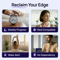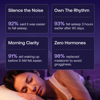 It doesn’t force sleep or override your brain. It’s designed to help your body gradually fall asleep earlier, so you don’t need higher doses over time or experience withdrawal if you stop.